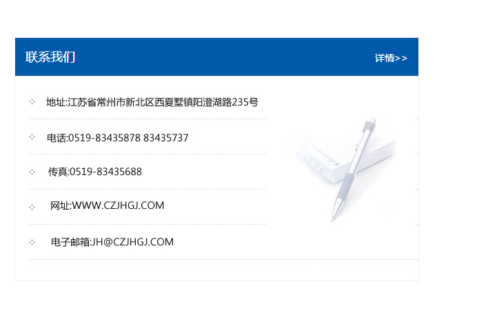 傳真:0519-83435688    郵編:213135    網址:WWW.czjhgj_com.lyjczy.com    電子郵箱:JH@czjhgj_com.lyjczy.com